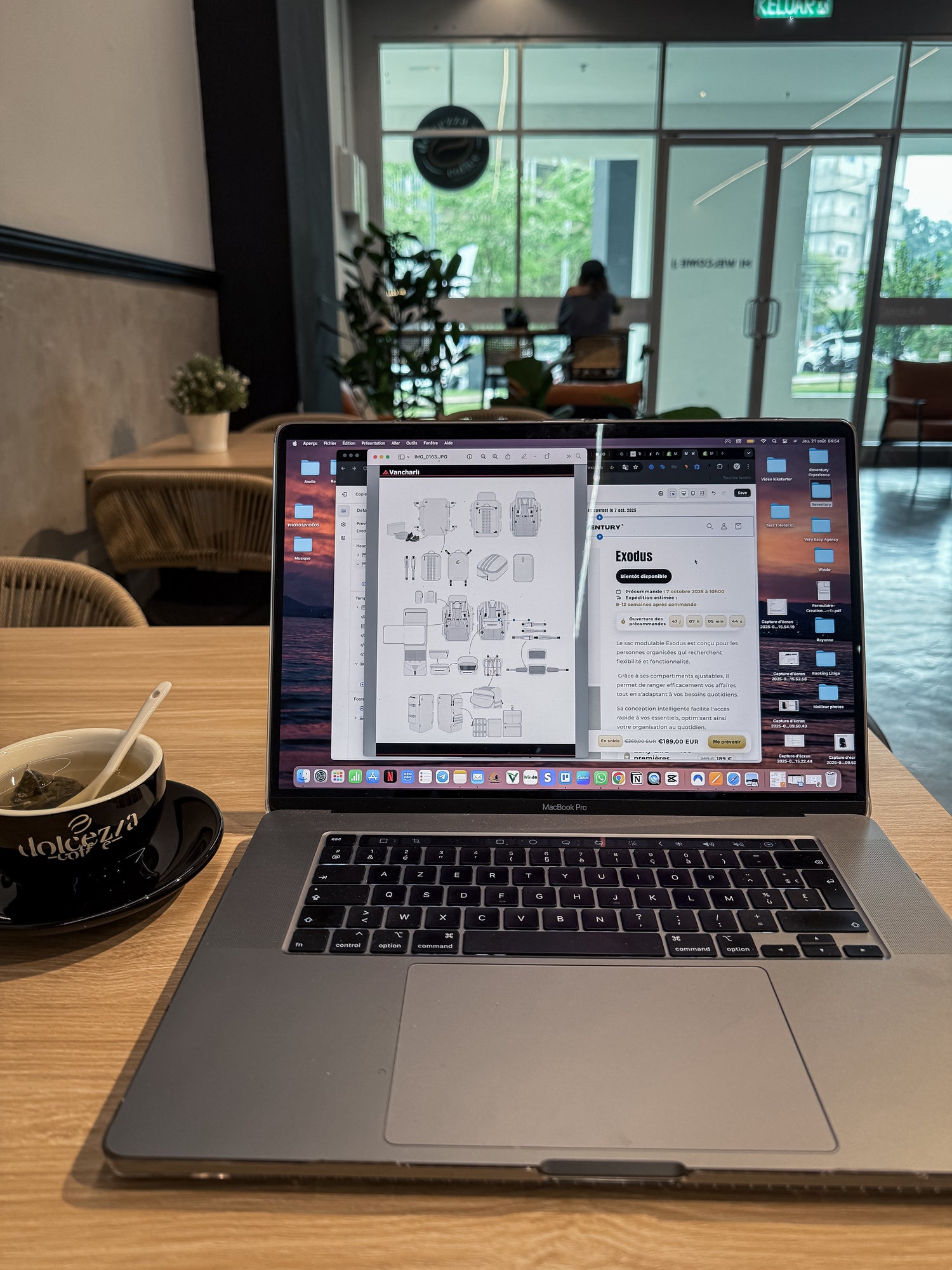 Après des mois de travail, de tests et de défis, Exodus est enfin né. Chaque détail est validé : la modularité, la solidité, l’esthétique. Ce sac n’est pas seulement un objet, c’est le reflet de mon voyage, de ma persévérance et de ma vision. Mais pour moi, ce n’est que le début d’une aventure. Des centaines de rencontres, de souvenirs et d’aides précieuses sont gravés dans ma tête, et chaque sac est le reflet de ce parcours. Exodus est prêt à vous accompagner, que ce soit pour le travail, le sport ou vos propres aventures, partout où vous irez.